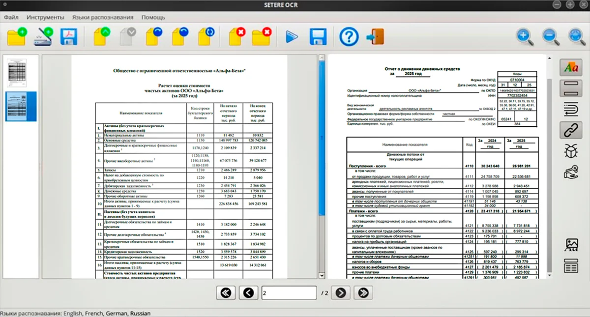 Функциональный российский аналог Adobe Reader позволяет не только просматривать PDF-документы, но и конвертировать их в форматы ODT, DOCX, TXT и другие. Но основное его назначение — оцифровка архивов. Мощный инструмент OCR на базе современных технологий способен точно распознать символы более чем на 180 языках и преобразовать содержимое сканов в редактируемые текстовые форматы.
