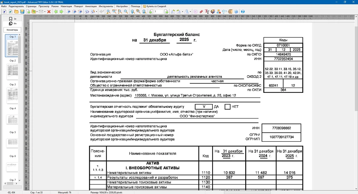 Этот аналог Adobe Acrobat Reader востребован в архивах, проектных бюро и типографиях, где работают с макетами и сканами в виде многостраничных TIFF и PDF. В нем можно просматривать, объединять и разделять ПДФ-документы, конвертировать их в различные графические форматы, настраивать параметры печати и сжатия. А встроенный OCR-модуль способен распознать символы на различных языках и добавить невидимый текстовый слой на изображения, чтобы стала доступна функция поиска по содержимому.