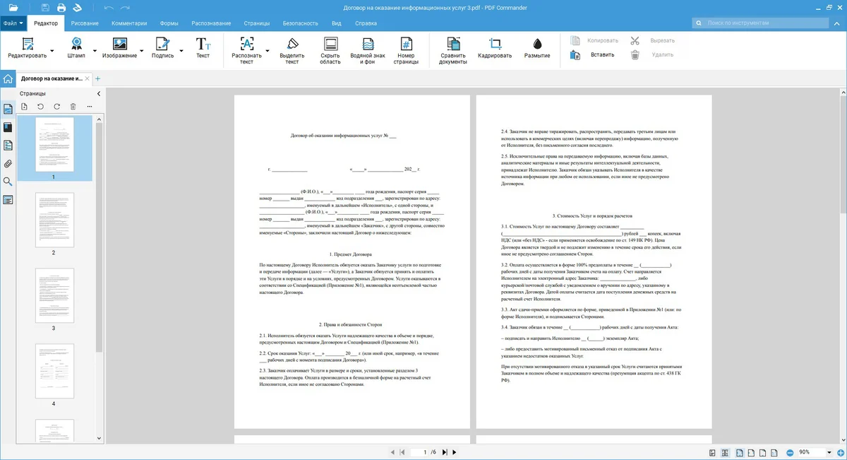 Функционал PDF Commander располагает интеллектуальным модулем распознавания текста с отсканированных документов, не уступающим по точности западному аналогу. Он эффективно работает даже с шумными нечеткими сканами. Кроме этого, редактор позволяет создавать документы с нуля.