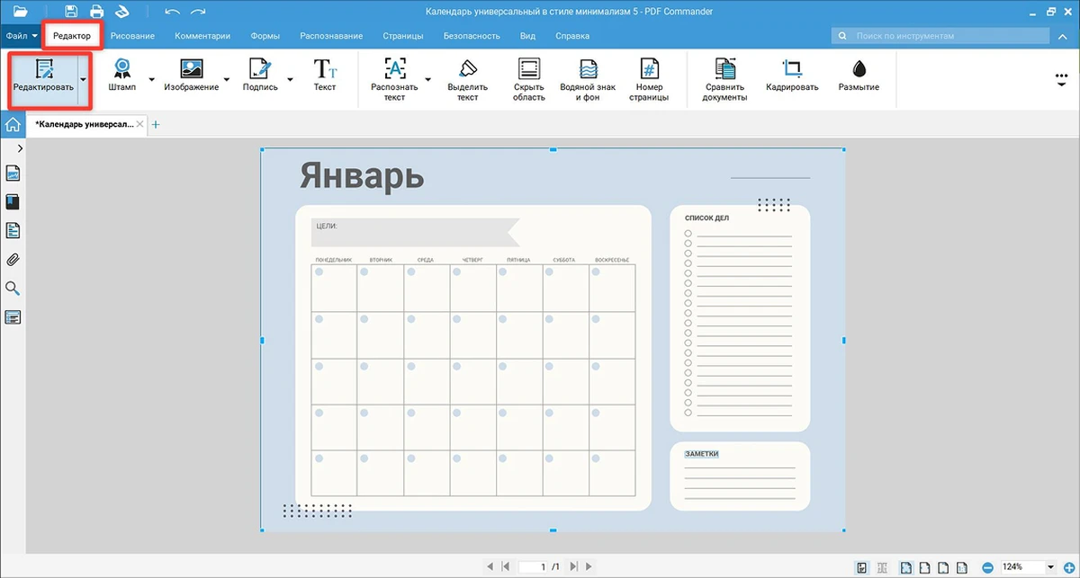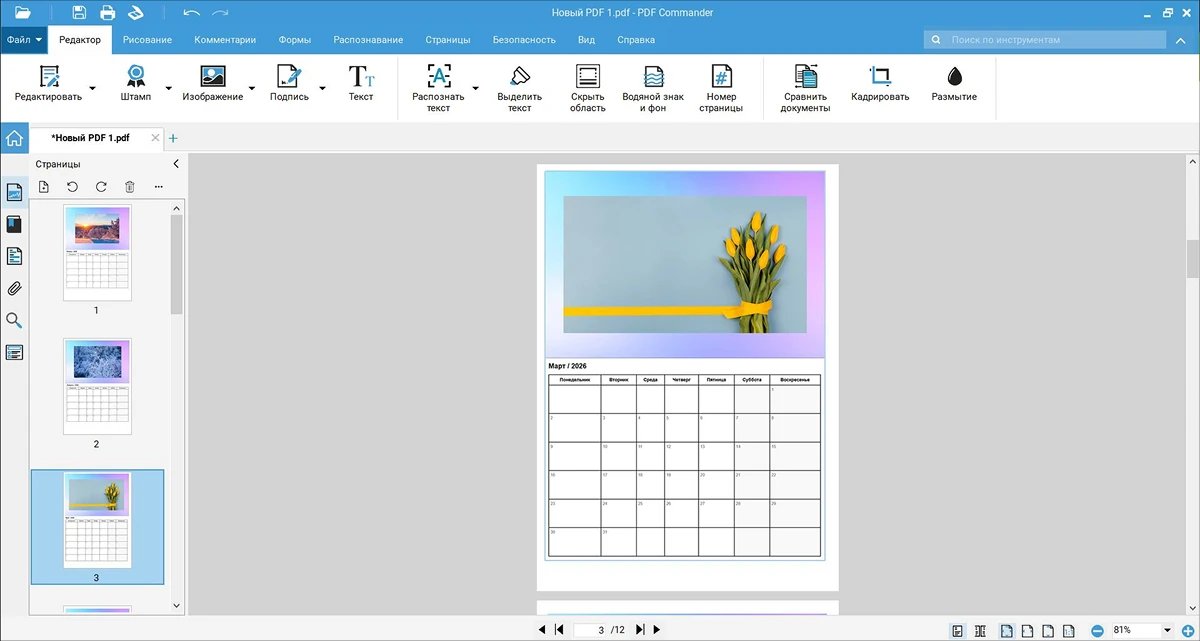 Если хочется создать уникальный календарь самостоятельно, то программа PDF Commander справится и с такой задачей.