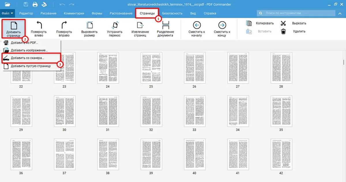 5. Перейдите в раздел «Страницы» → «Добавить со сканера».