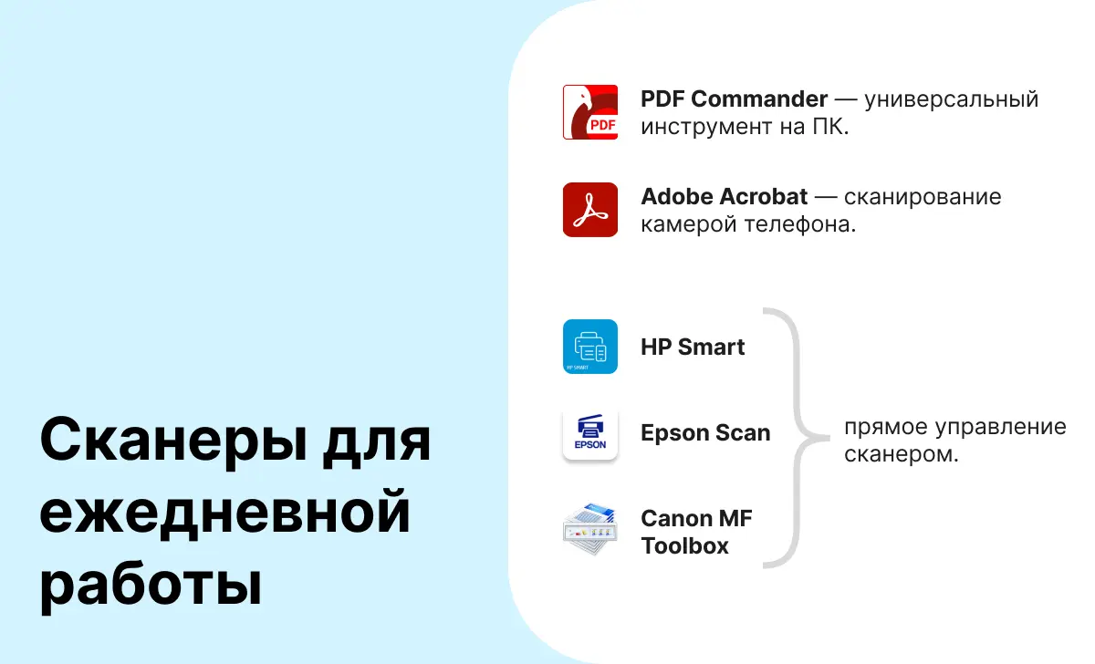 Если вам нужно просто и быстро для разовой задачи — смотрите на встроенные инструменты вашего сканера или принтера. Для больших документов и аккуратного результата лучше подойдет настольный PDF-редактор.