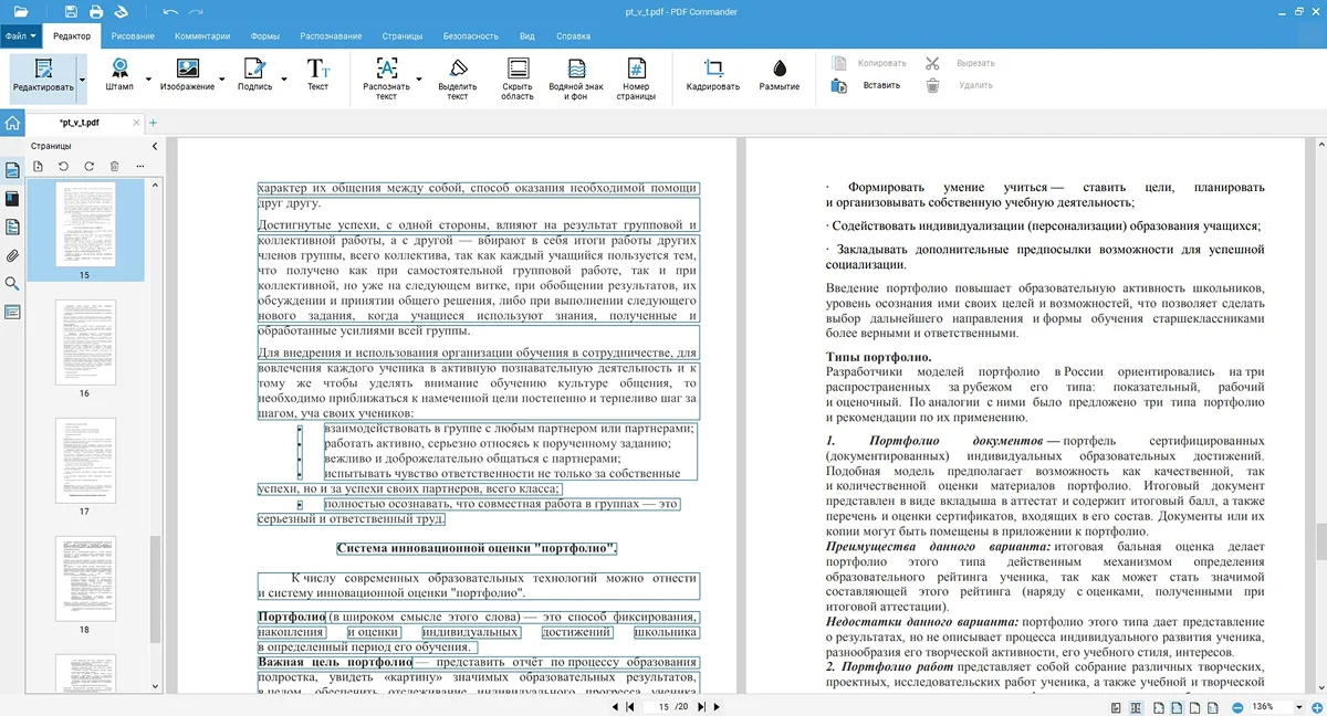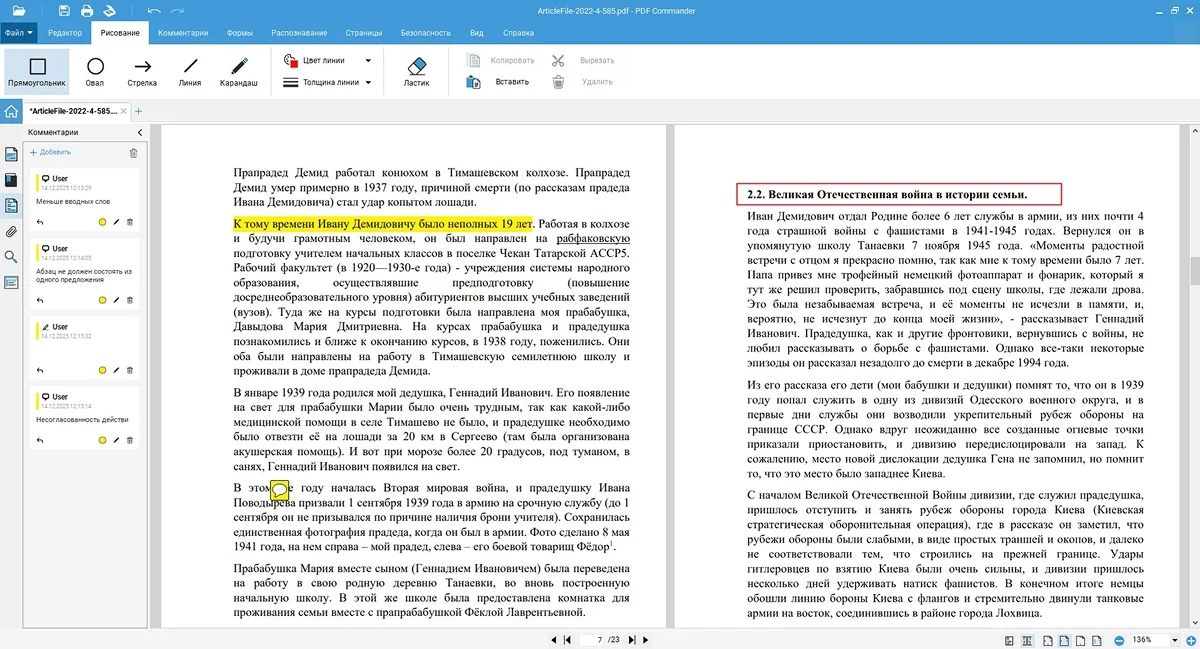 Программа облегчает проверку учебных работ. Не важно, в каком формате учащиеся сдали проект — благодаря конвертации вы легко преобразуете их в PDF. Вносите исправления, оставляйте комментарии, выделяйте удачные и проблемные места цветом или обводкой.