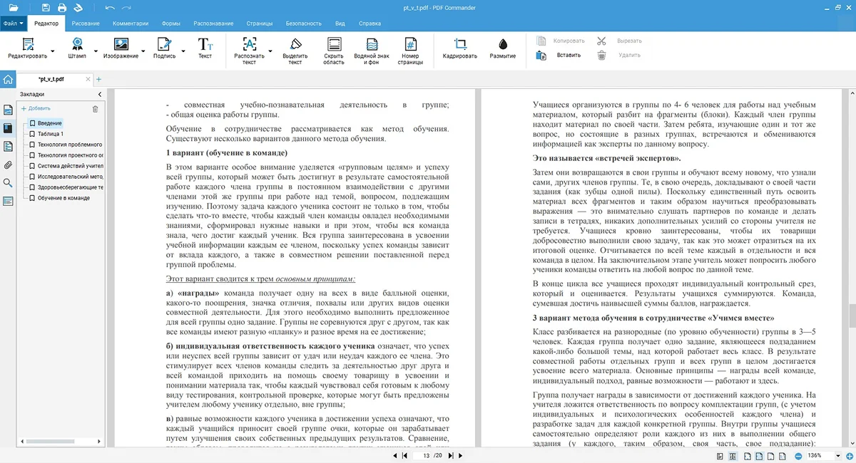 PDF-редактор помогает решать любые задачи, связанные с организацией образовательного процесса и отчетностью. С его помощью удобно составлять учебные планы, оформлять доклады, рефераты, презентации в ПДФ. Это гарантирует, что ваша работа сохранит оригинальный вид на любом устройстве: останутся неизменными шрифты, поля «не поплывут», заголовки и иллюстрации будут на своих местах.