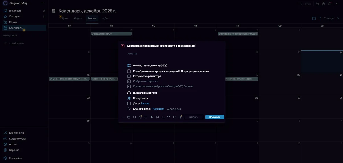 В российском планировщике удобно составлять список дел на неделю или месяц и отслеживать прогресс с помощью чек-листов. Можно синхронизировать задачи в приложении для учебы на компьютере, телефоне и онлайн-платформе.