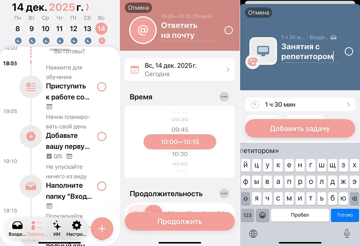 - чат с AI-ассистентом, помогающим составлять расписание, доступен только платно.