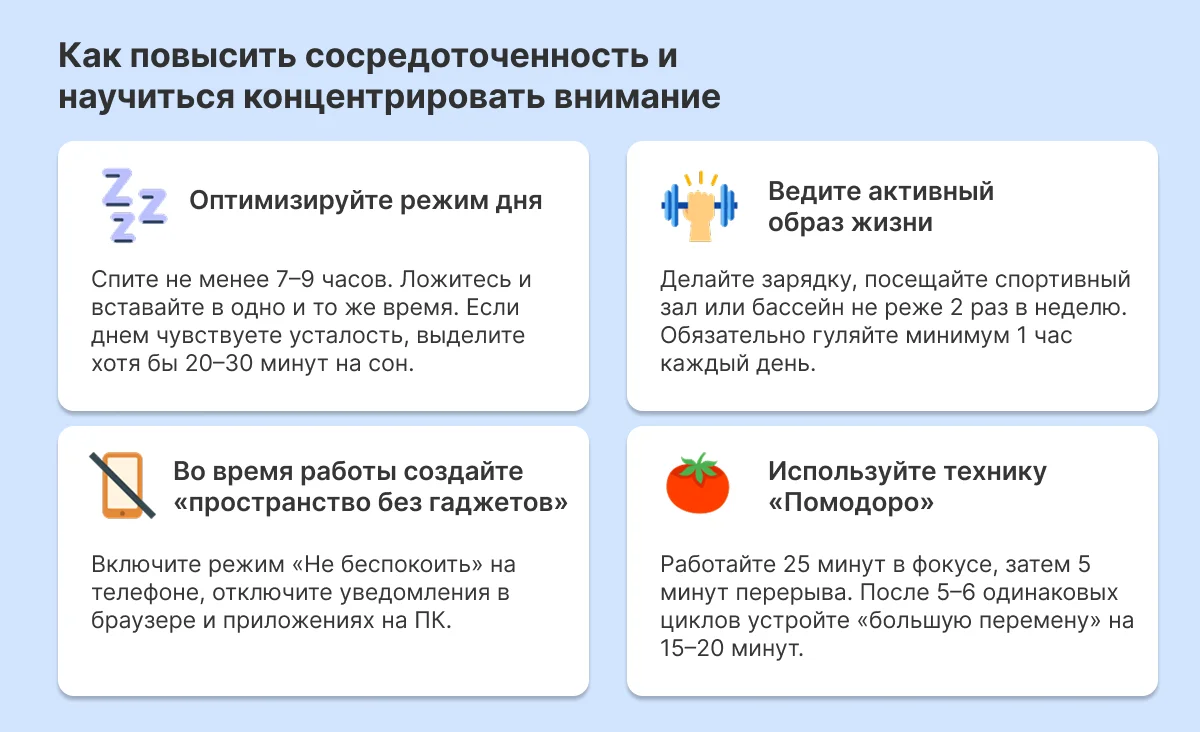 Ученые всего мира бьют тревогу: у современных людей с каждым годом снижается способность концентрироваться. В числе причин, вызывающих проблему, специалисты называют высокий уровень стресса, хроническую усталость и большое количество отвлекающих факторов.