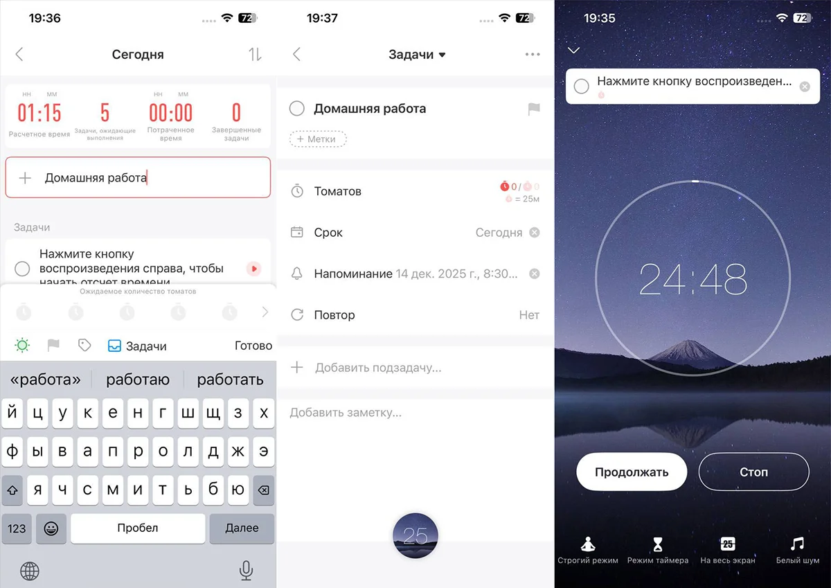Софт сочетает функционал трекера задач и таймера. Составьте список важных дел, задайте напоминания и включите отсчет времени. Спустя 25 минут вы получите уведомление о необходимости сделать перерыв.