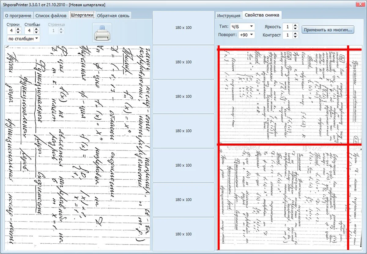 Простое приложение для учебы на ноутбуке позволяет создавать шпаргалки из отсканированных или сфотографированных страниц конспектов и учебников. В ней можно изменять размер снимков, улучшать четкость текста, компоновать несколько изображений на одном листе A4 и отправлять документ на печать.