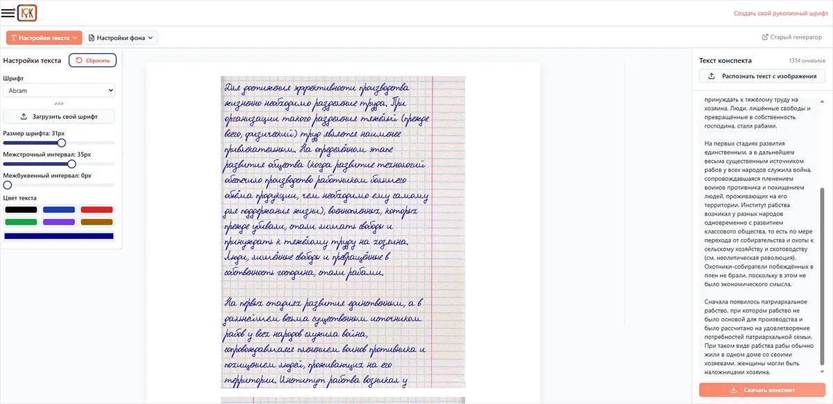 Сервис поможет вам преобразовать печатный текст в рукописный. Выручит, если у вас консервативный преподаватель, требующий для допуска к зачету показать записи лекций. Также на сайте есть функция OCR-распознавания символов на изображении. Можно просто переснять конспект у товарища, преобразовать изображение в текст, а потом «переписать» лекцию. Поэтому многие студенты считают Писаку лучшим приложением для учебы в университете.