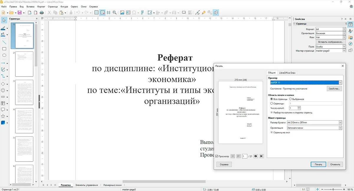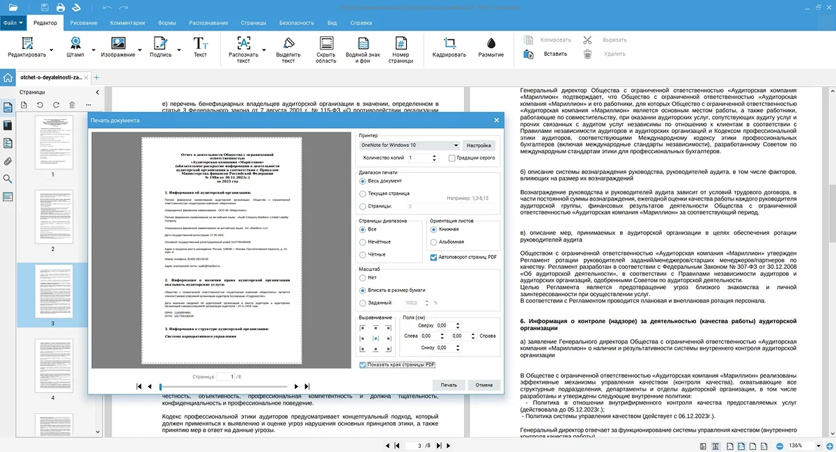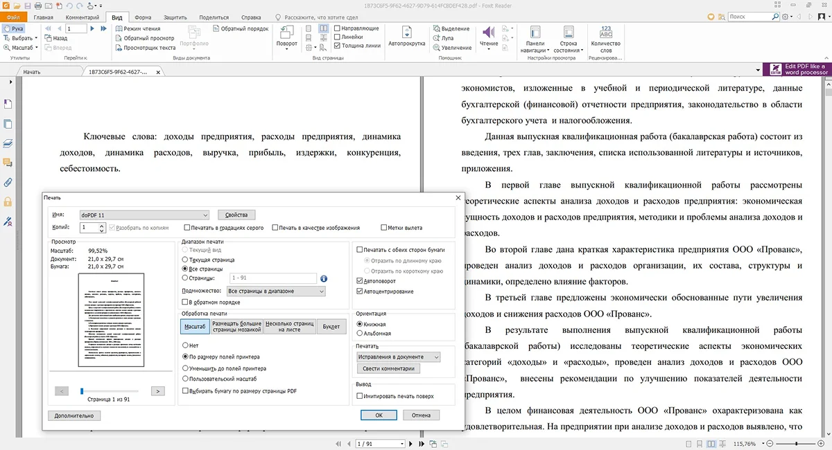 Удобное бесплатное приложение для печати и просмотра PDF. Если прислали документ на рецензирование, можно преобразовать его в бумажный вид для удобства чтения, сделать пометки, а потом перенести их в виде электронных комментариев.
