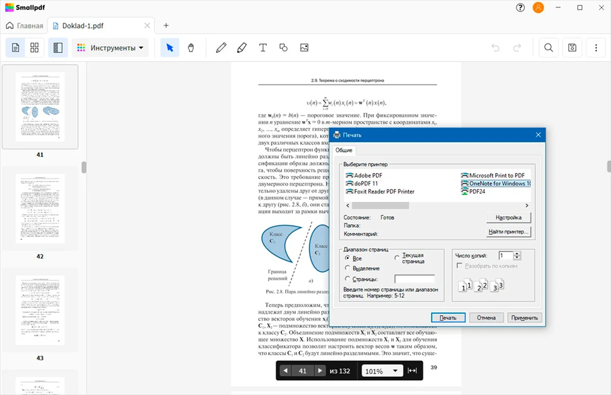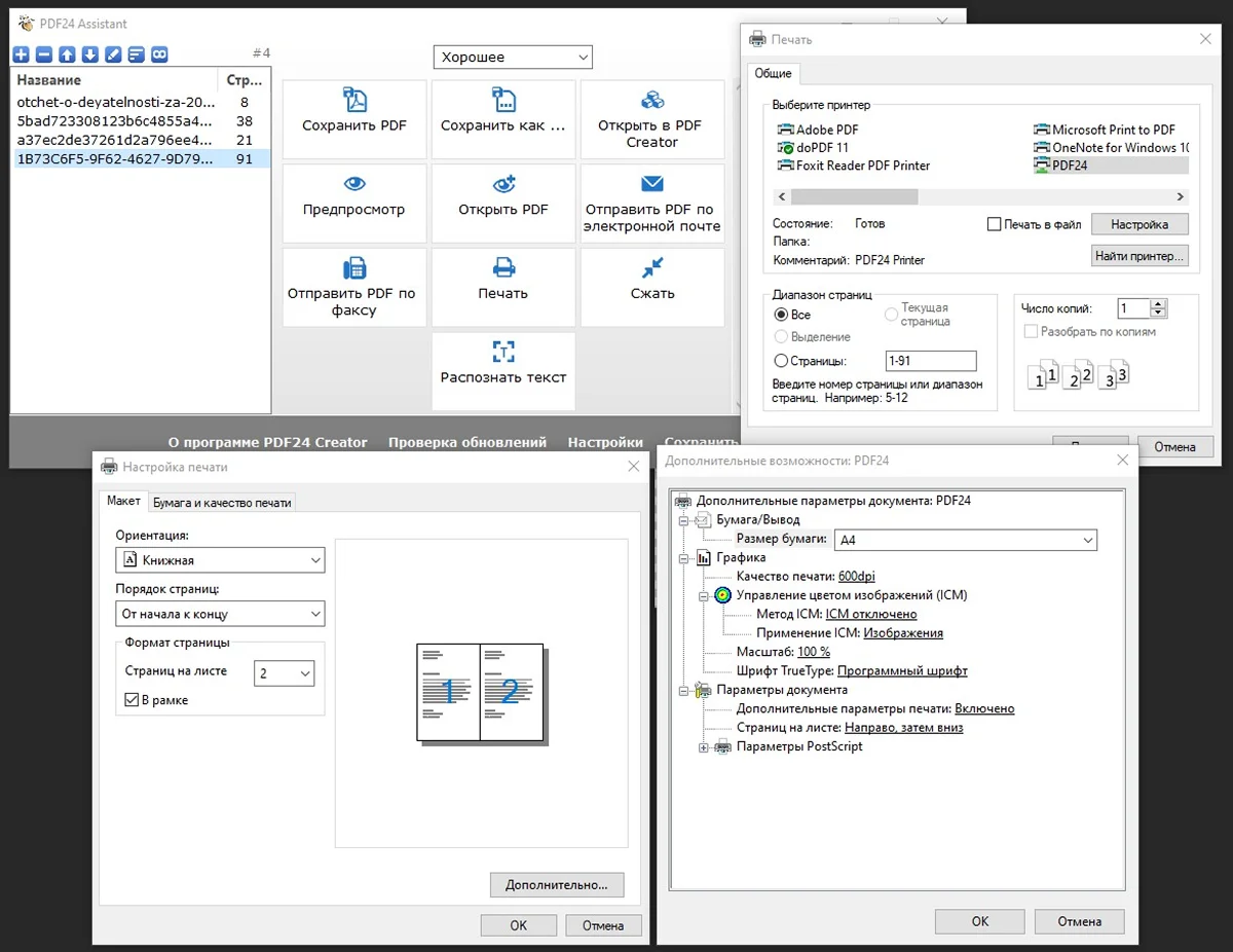 Программа предлагает 40+ инструментов для работы с PDF-файлами. С его помощью можно легко конвертировать документы в разные форматы, добавлять и менять текст, объединять PDF-файлы, распознавать текст на сканах. У PDF24 есть веб-версия, но приложение для печати есть только в десктопном варианте.