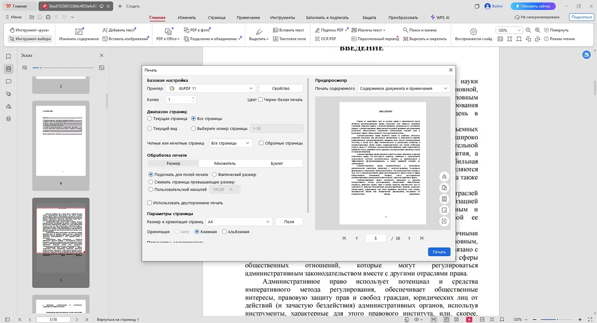 - предусмотрены расширенные настройки выбора содержимого при распечатывании — текст и разметка, только формы, комментарии и т. д.;