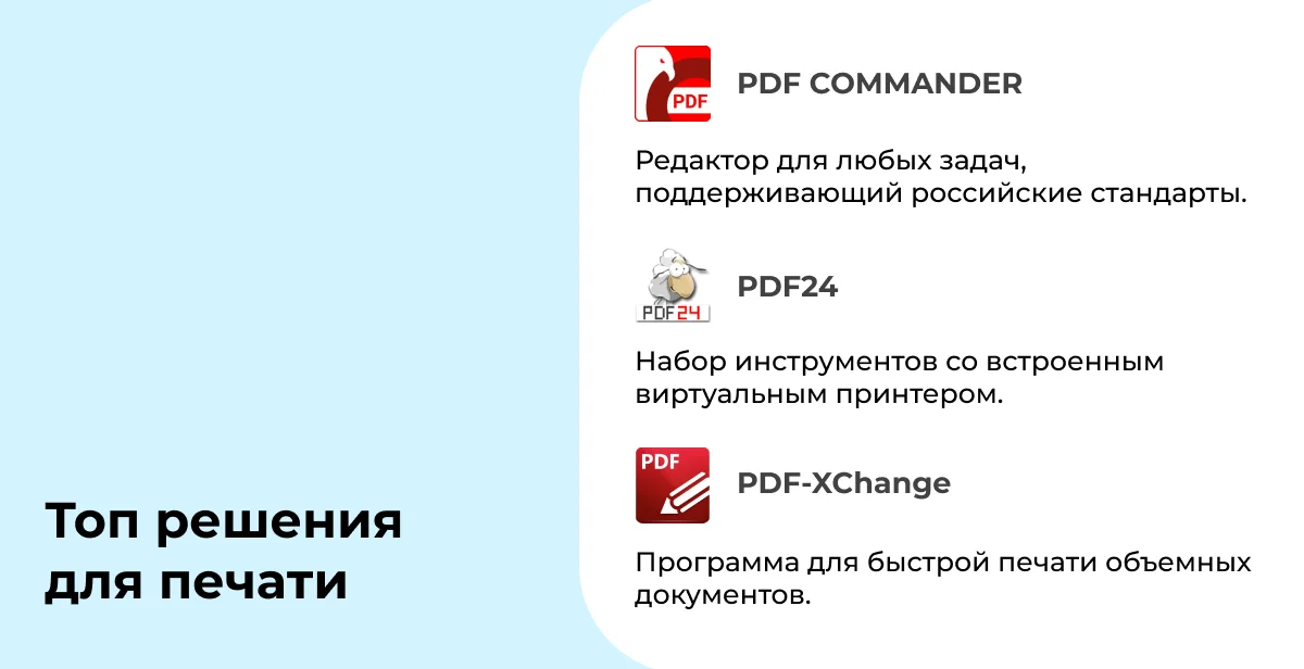 Для чего подойдет: печать сложных в форматировании PDF-документов и макетов.