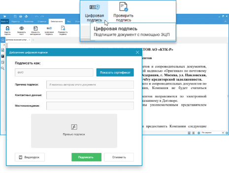 - Поддержка электронных подписей