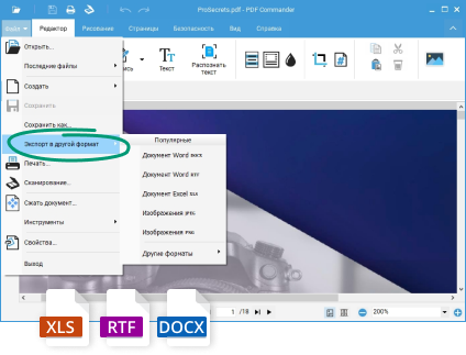 - Конвертация PDF в WORD, EXCEL, TXT, JPEG, PNG, TIFF, RTF